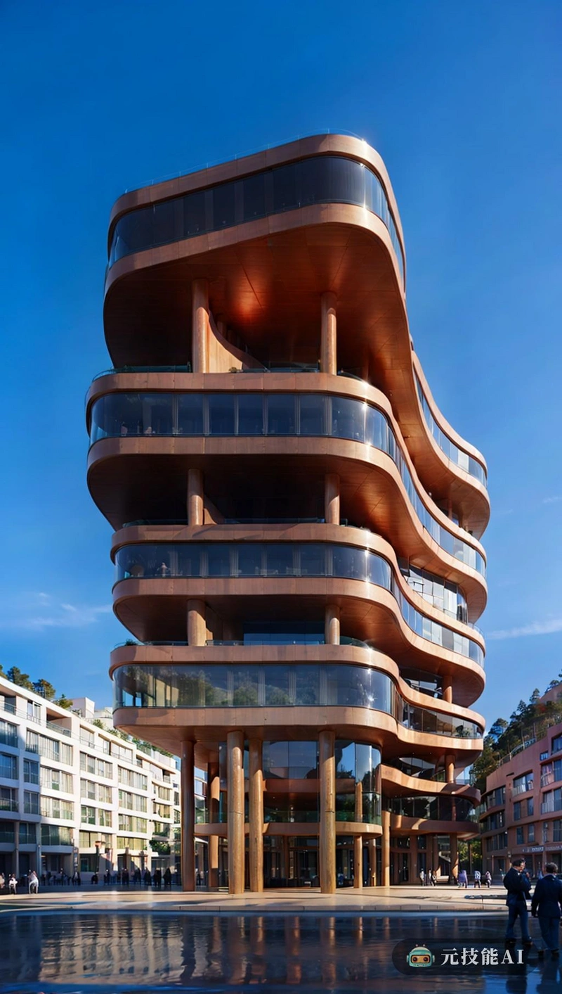 This modern city has many buildings that reflect its technological progress and architectural style. Middle school is such a building, with a fashionable and exquisite design that emphasizes high-tech functions. The use of copper in architecture adds luxurious and exquisite elements to the structure. The style of Pompidou can be seen from the external curves and angles of the building, creating a sense of sportiness and vitality.masterpiece,best quality,high resolution,high detail,
